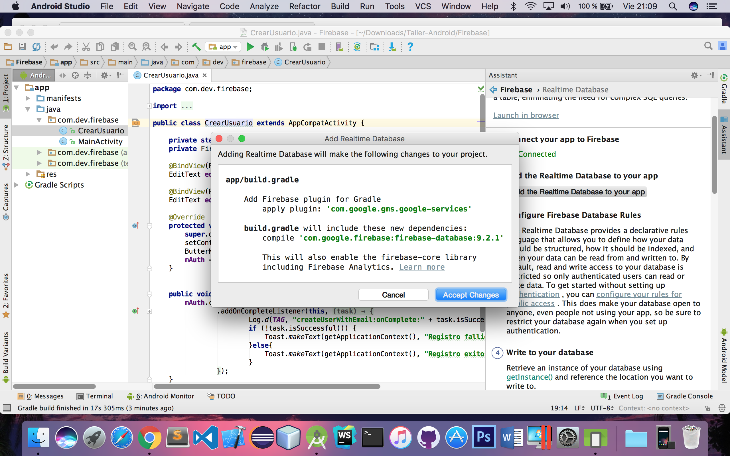 Vamos al Android Studio Tools->Firebase->Realtime Firebase