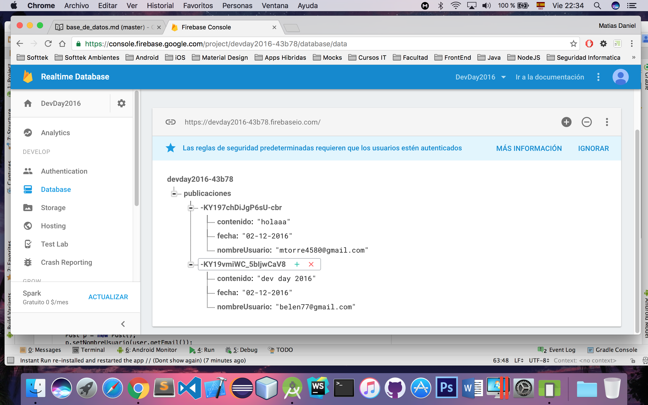 Vamos a utilizar el mismo proyecto con el login de firebase y vamos a agregar el módulo de base de datos en tiempo real.