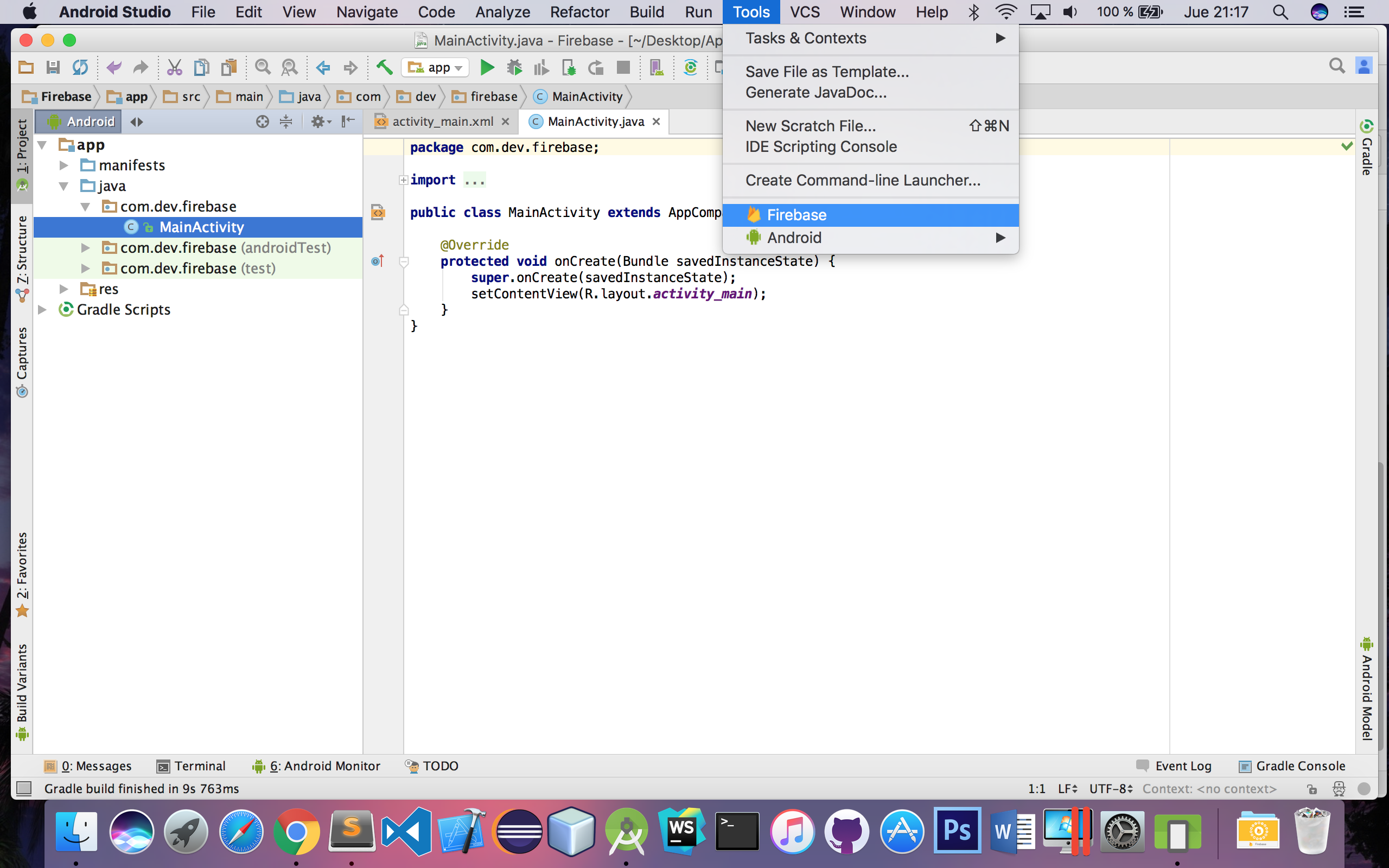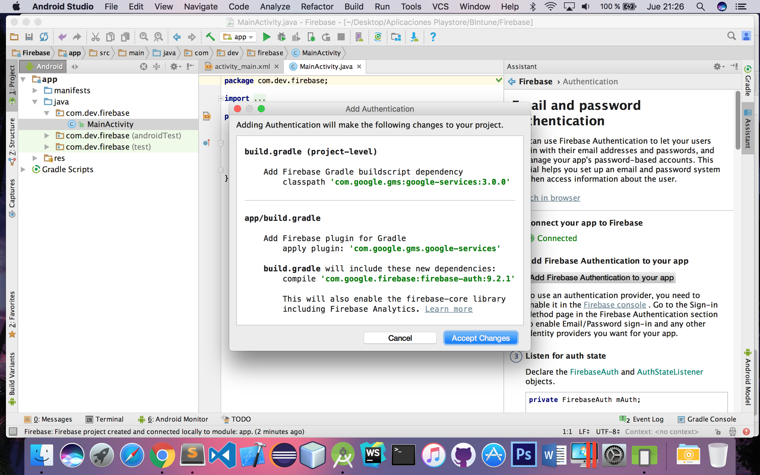 Gracias a la versión nueva de android studio integrar firebase ahora es más facil que antes